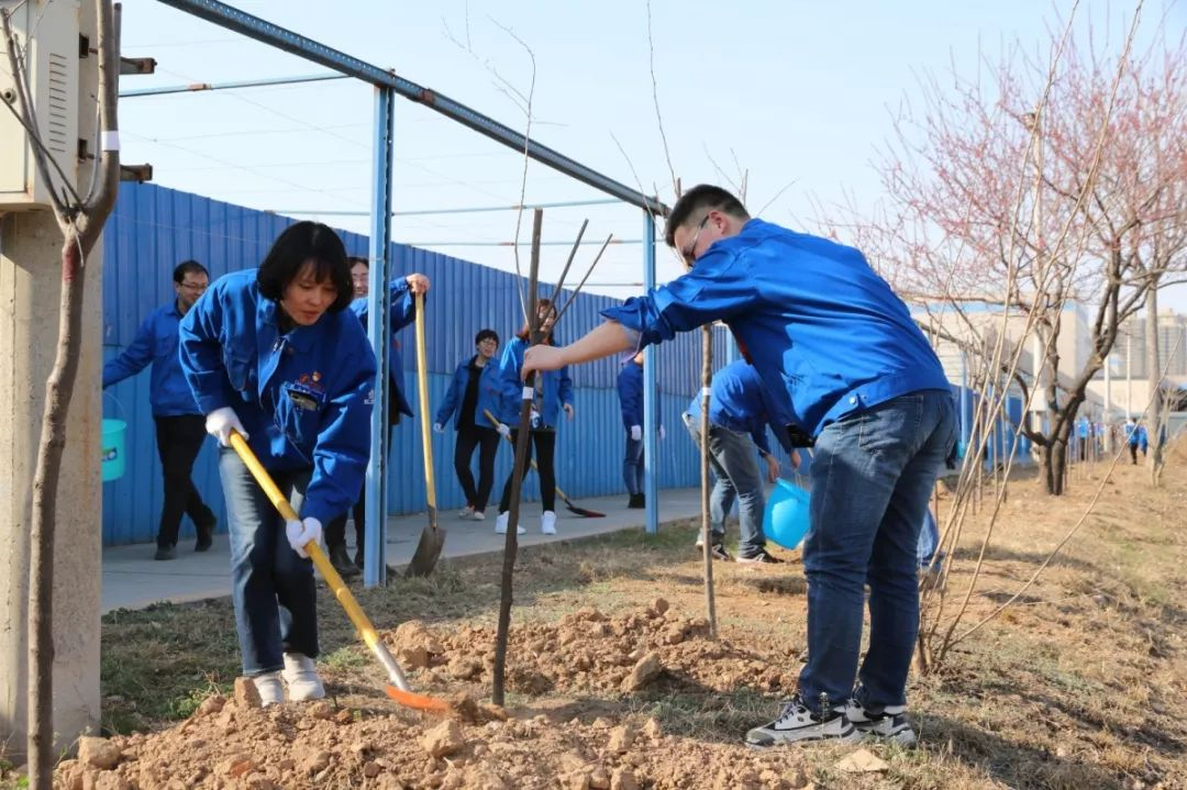 又是一年植树节,下午4点,通汇物流党总支组织各部门人员在员工通道栽植部分红叶李。大家拎着铁锹提着水桶,春风满面,热情高涨。每个部门按照分配到的编号进行树木种植,并做好后期浇水养护工作。