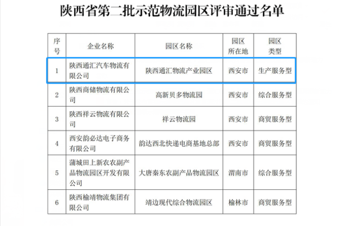 陕西省第二批示范物流园区评审通过!通汇物流为陕西省物流业高质量发展再添新动力